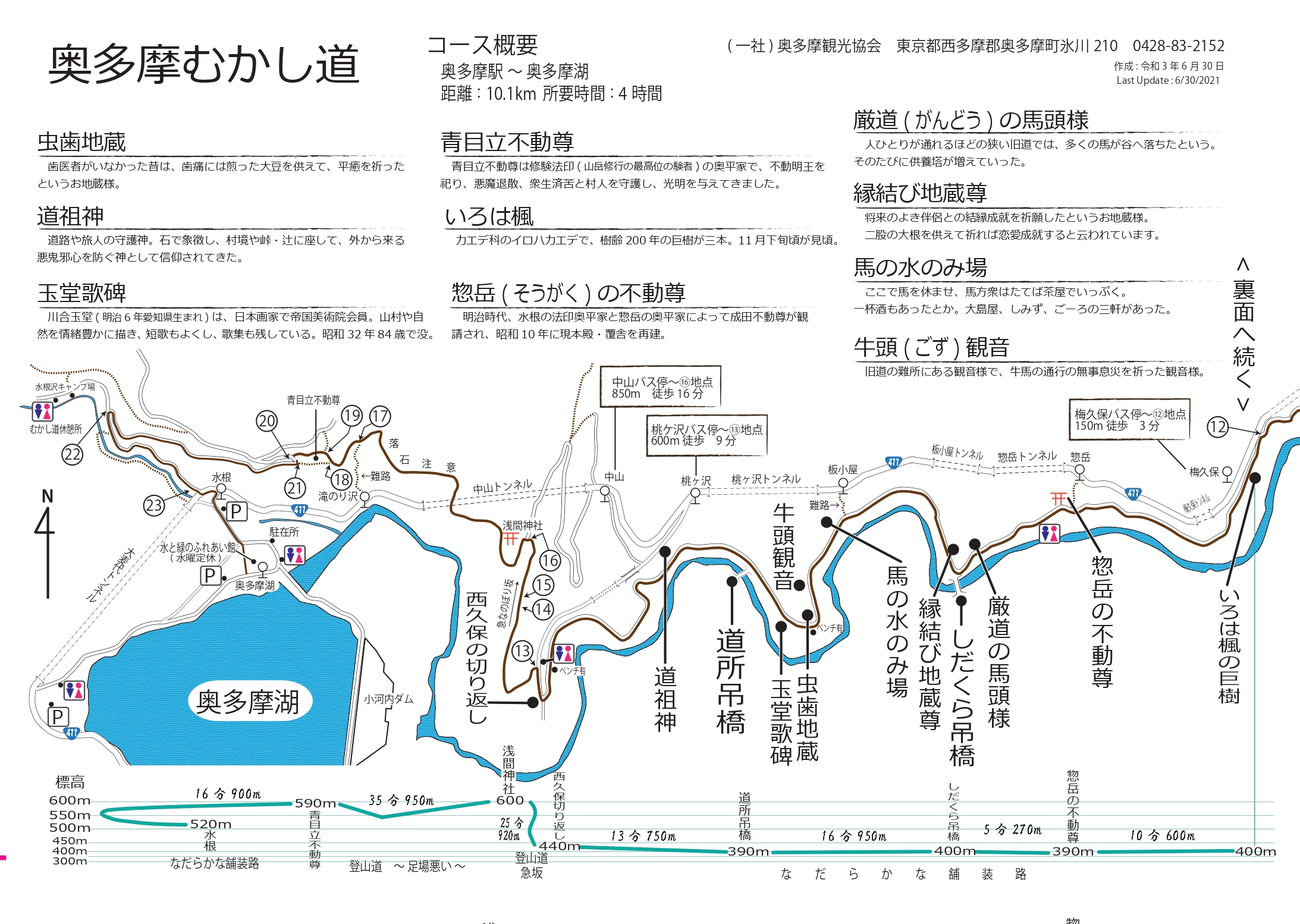 奥多摩むかし道のコースマップになります。奥多摩観光協会・奥多摩町観光案内所HPからダウンロードも可能。