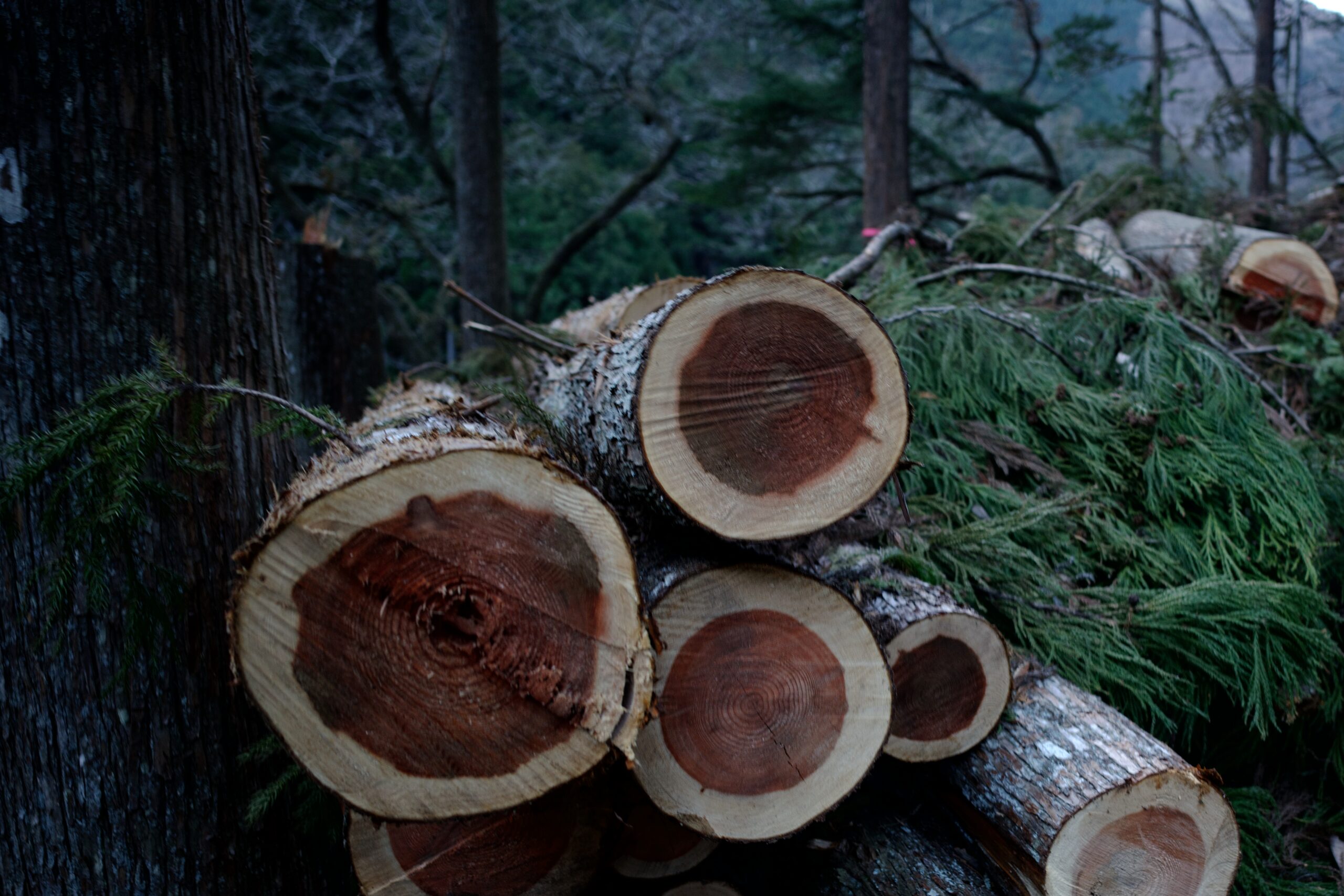 伐採された杉の断面岐。