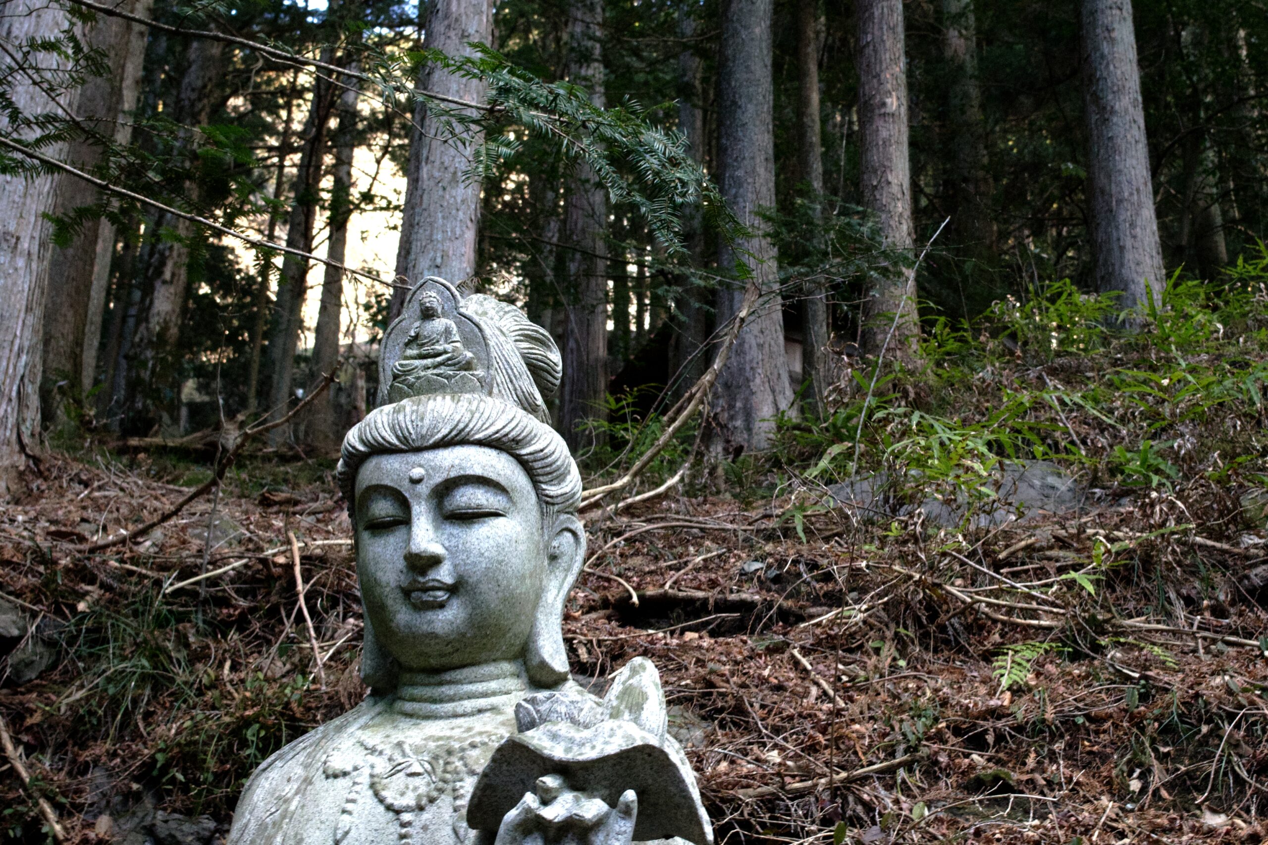 慈悲深い表情をした観音像。