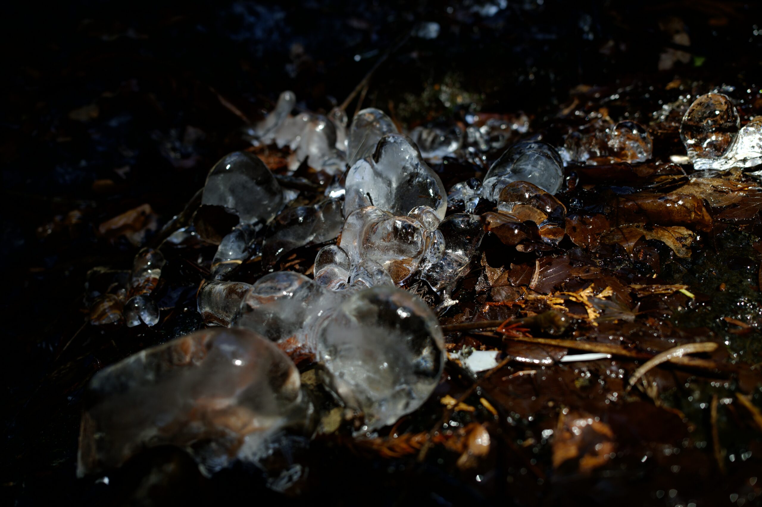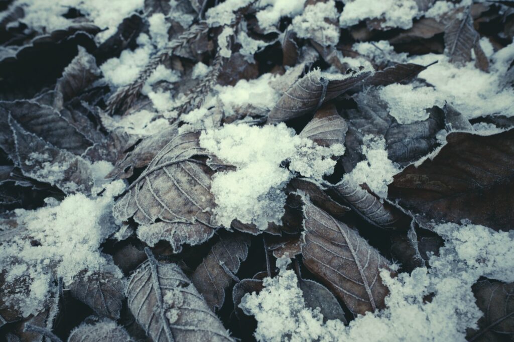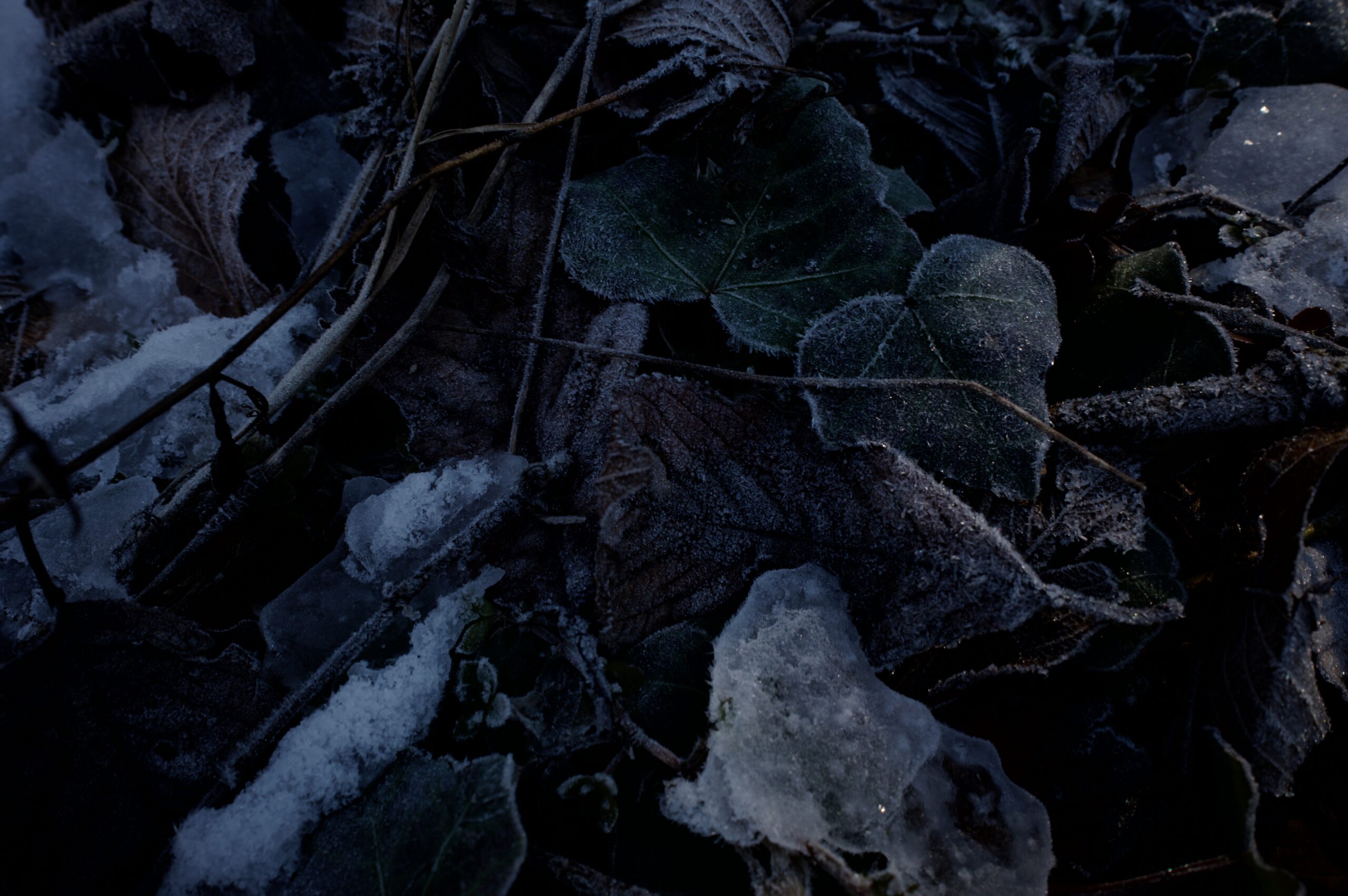 凍った落葉。