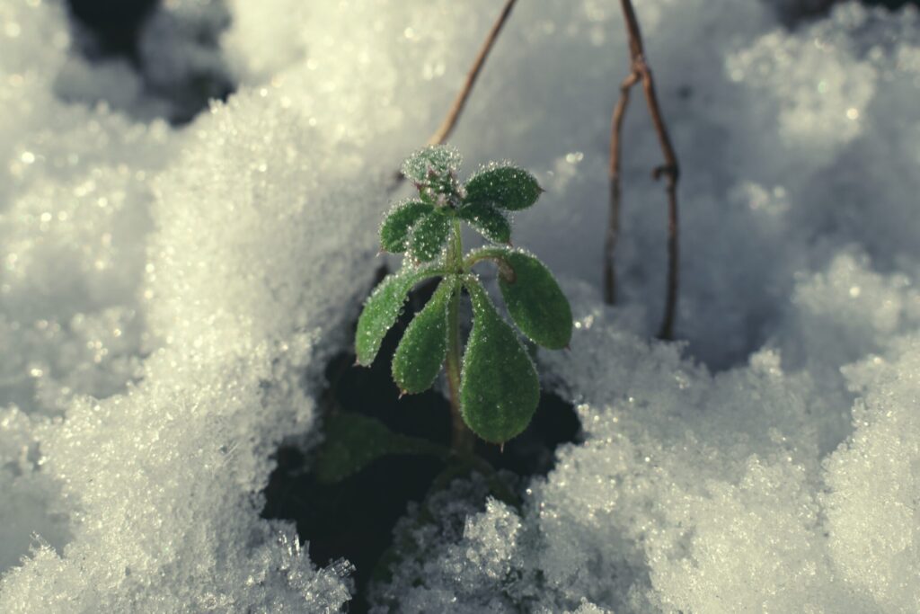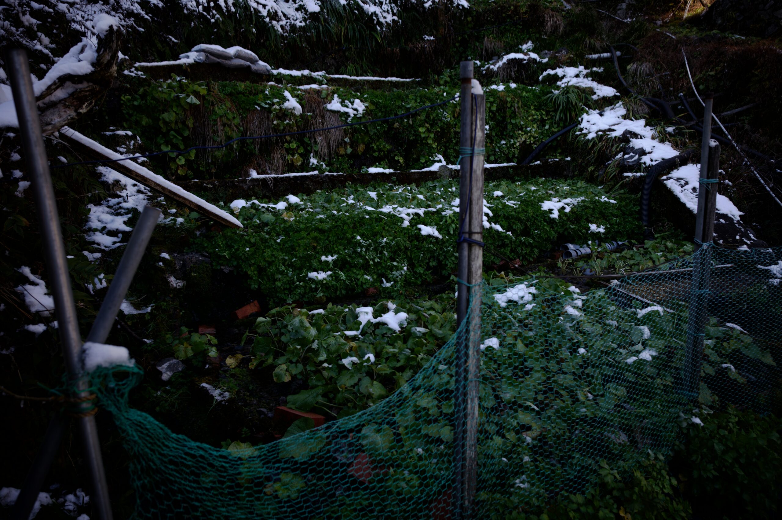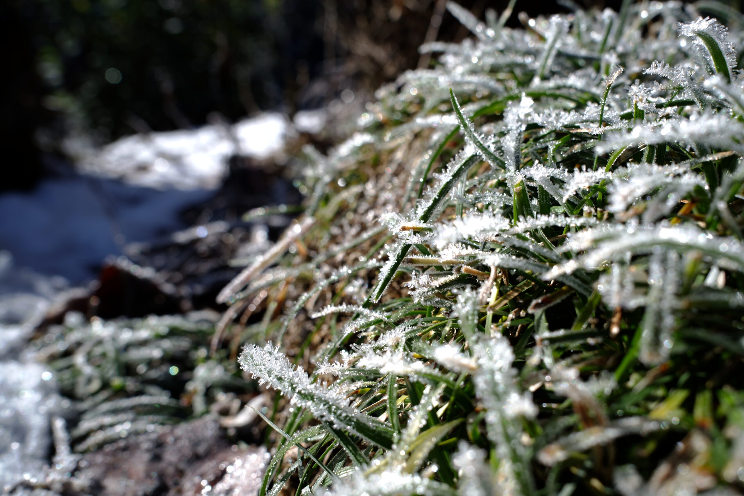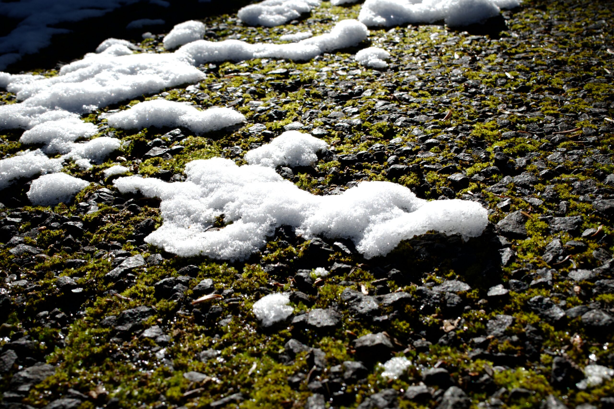 砂糖菓子のような雪。アスファルトの苔も綺麗。