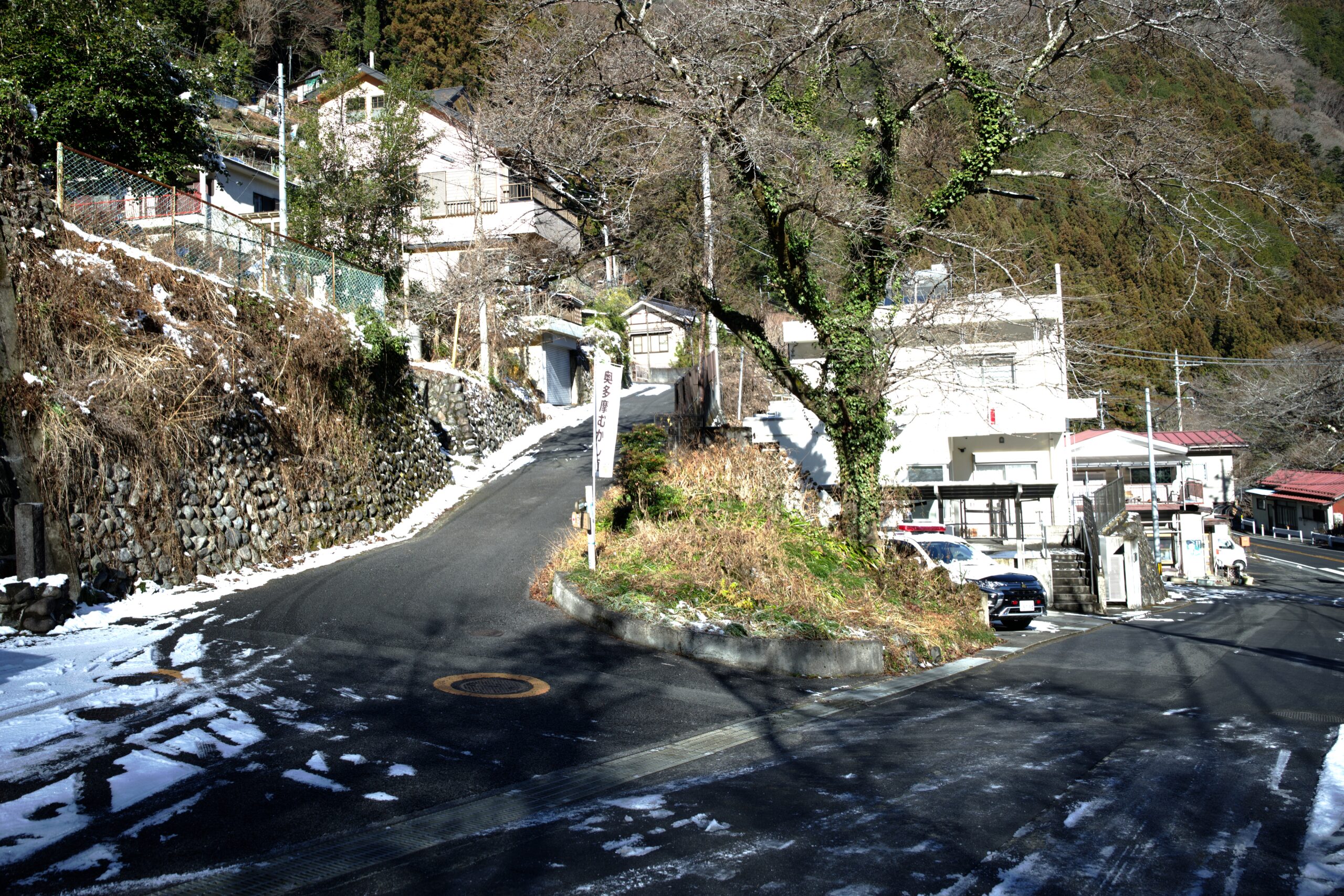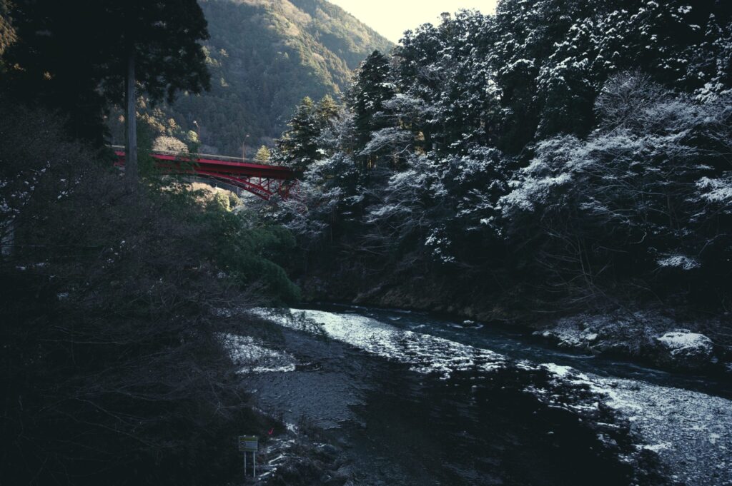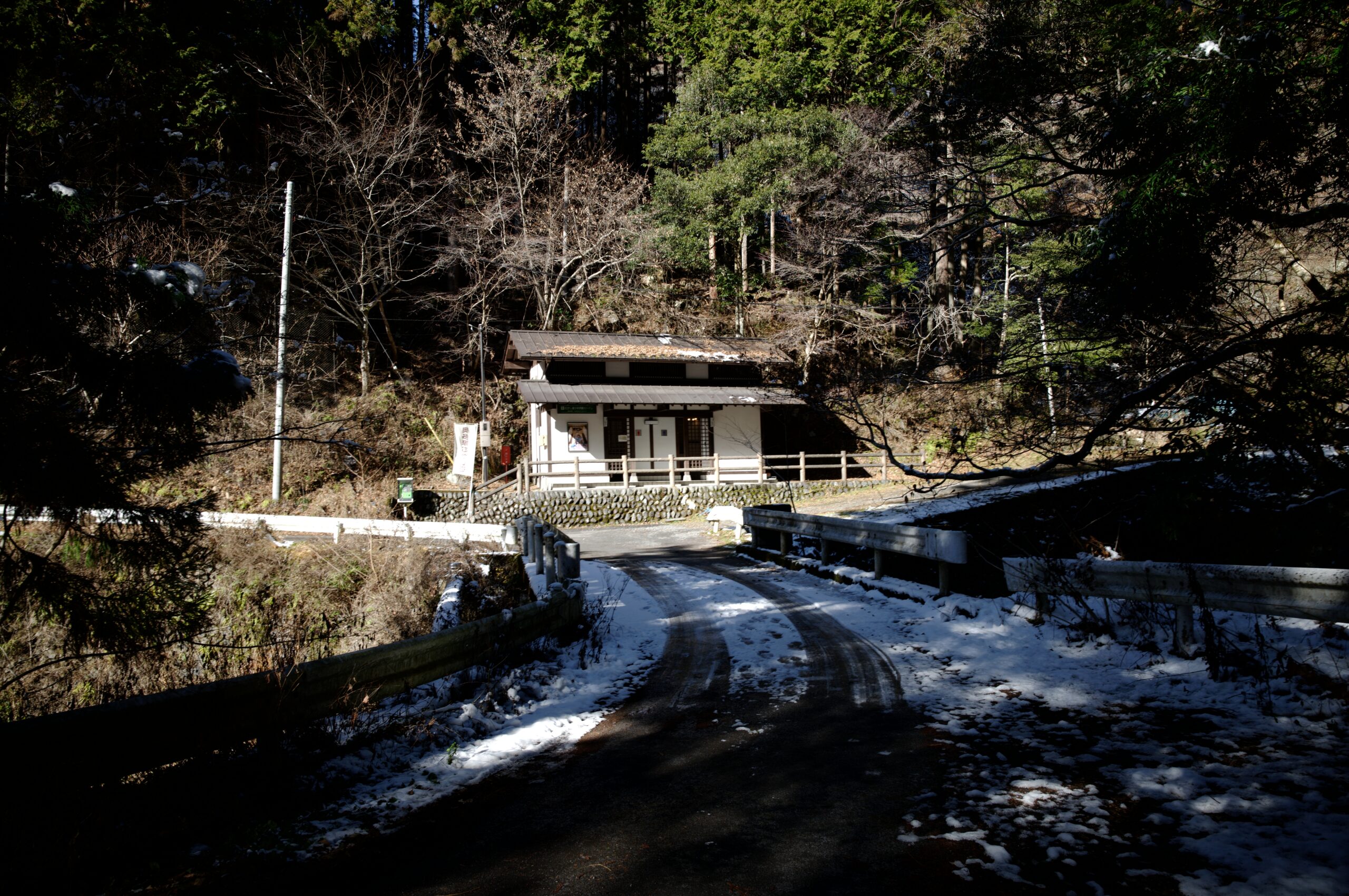 数日前の大雪が残る奥多摩。それでも駅前周辺に残雪は殆ど見られず、冬の渓谷周辺を散策することができました。