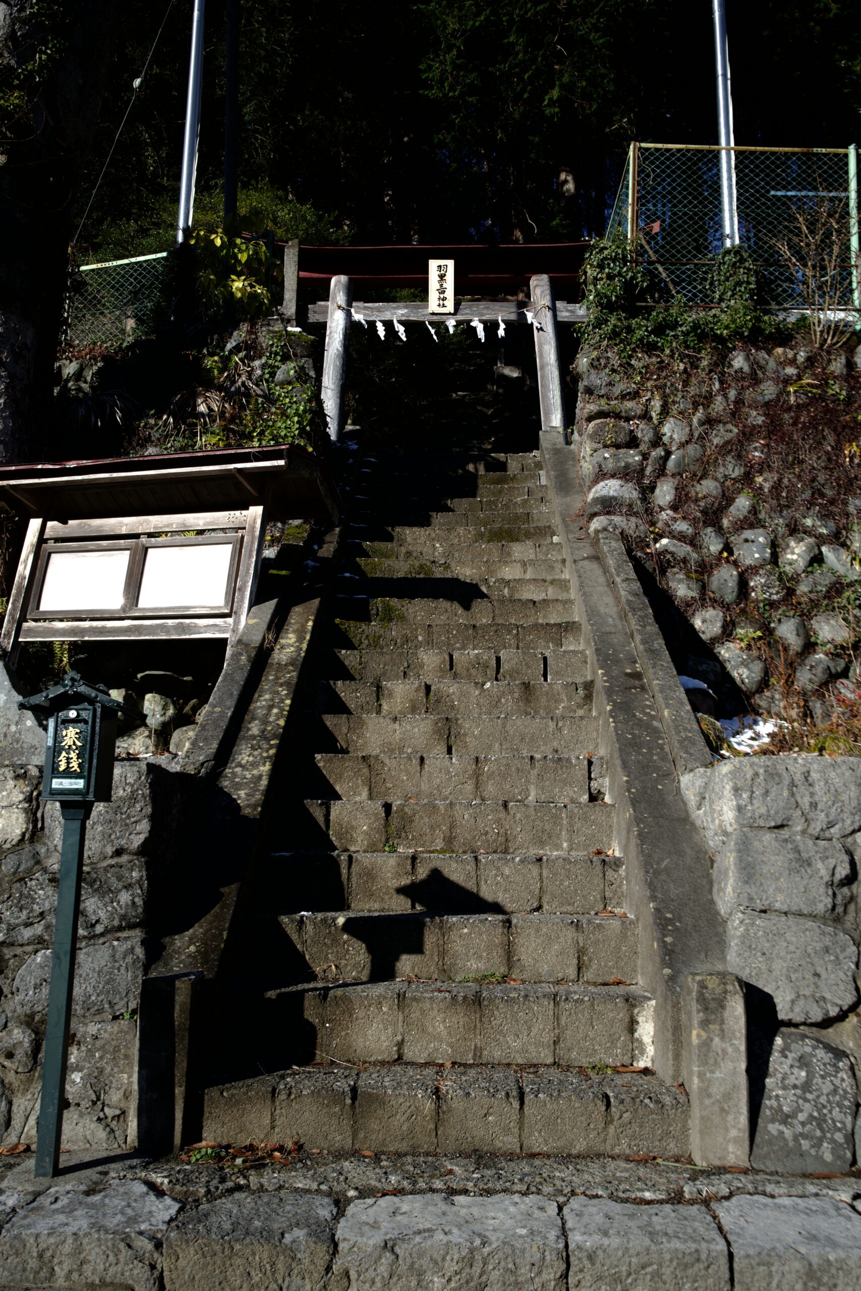 鷹ノ巣山の登山口に向かう際にも通り掛かる羽黒三田神社の鳥居。因みにこの坂道は羽黒坂というそう。