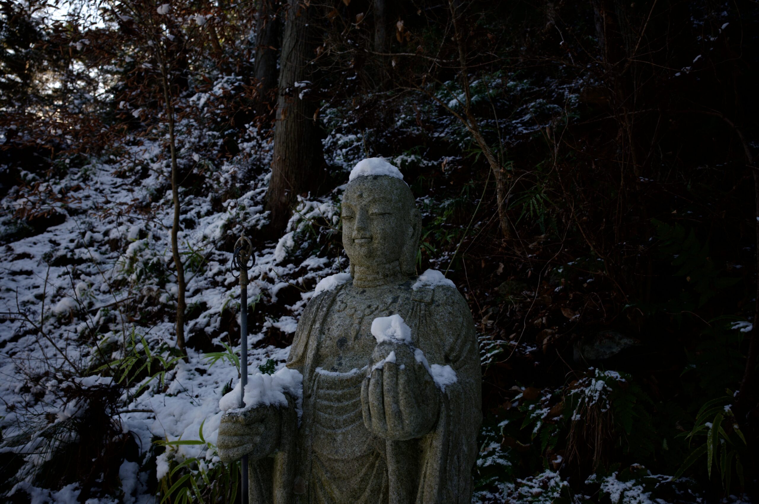 石仏にも雪。