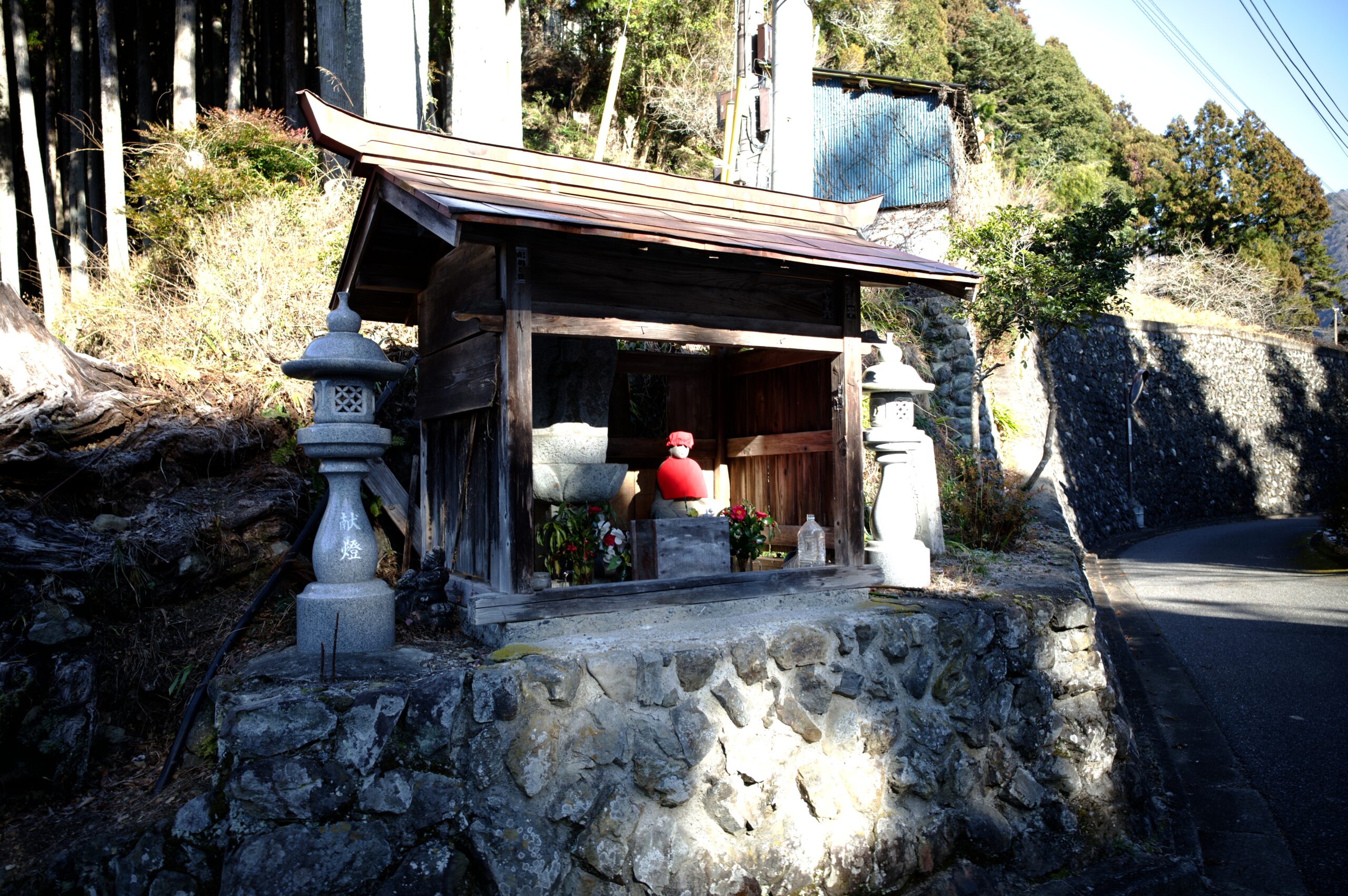 林道を見守るお地蔵様。