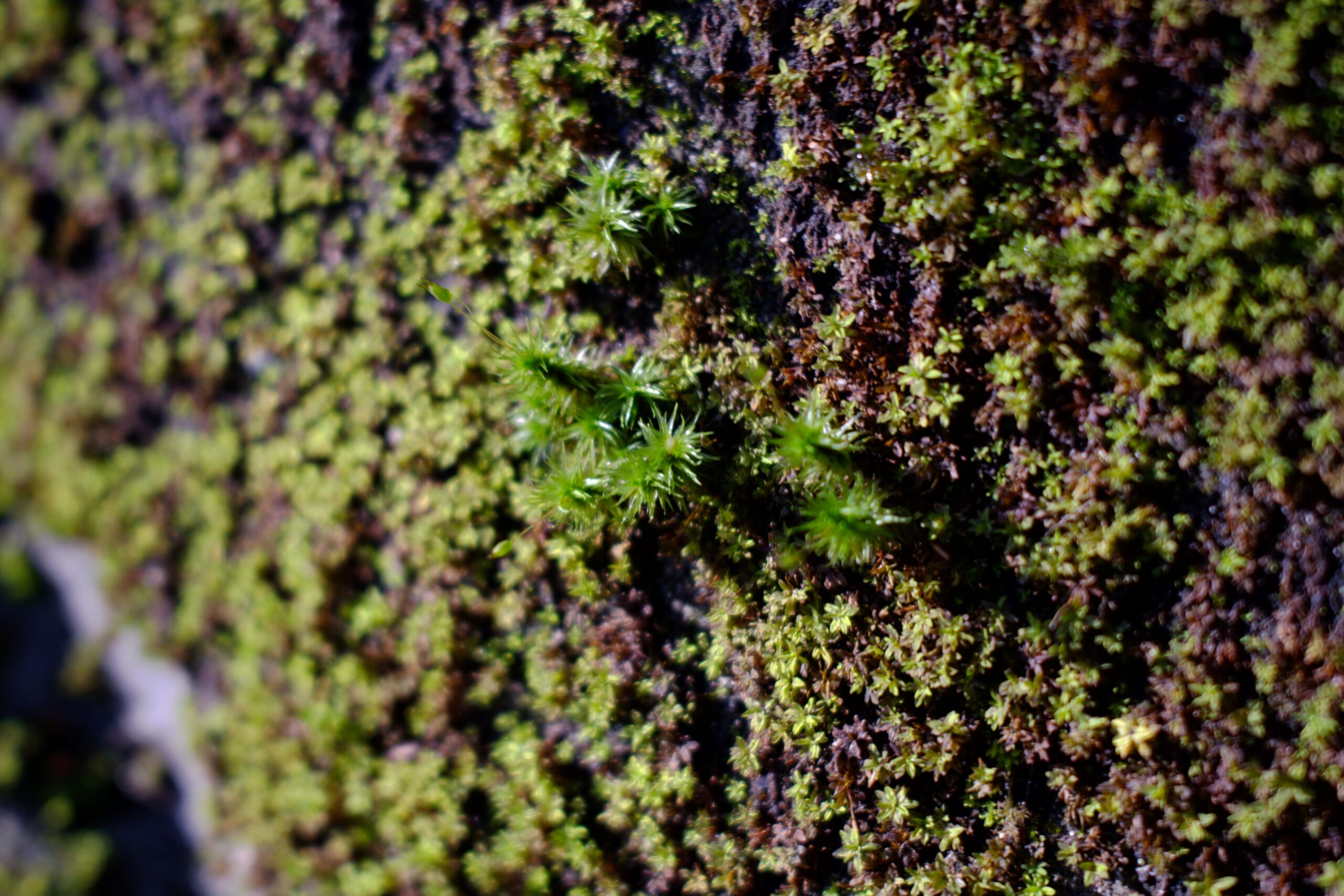 道端の擁壁にへばり付く苔。