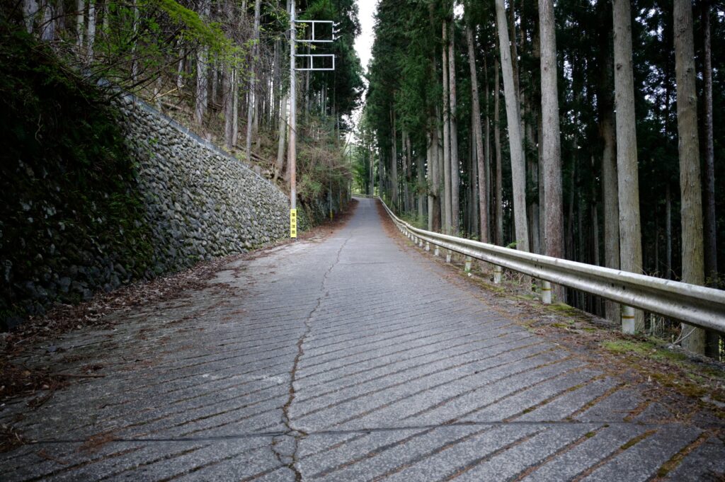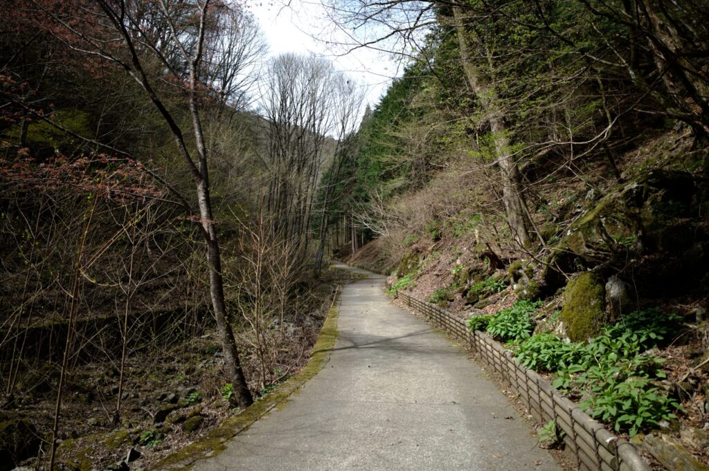 ワサビ田の広場から五分ほど歩くと、舗装路の終点。