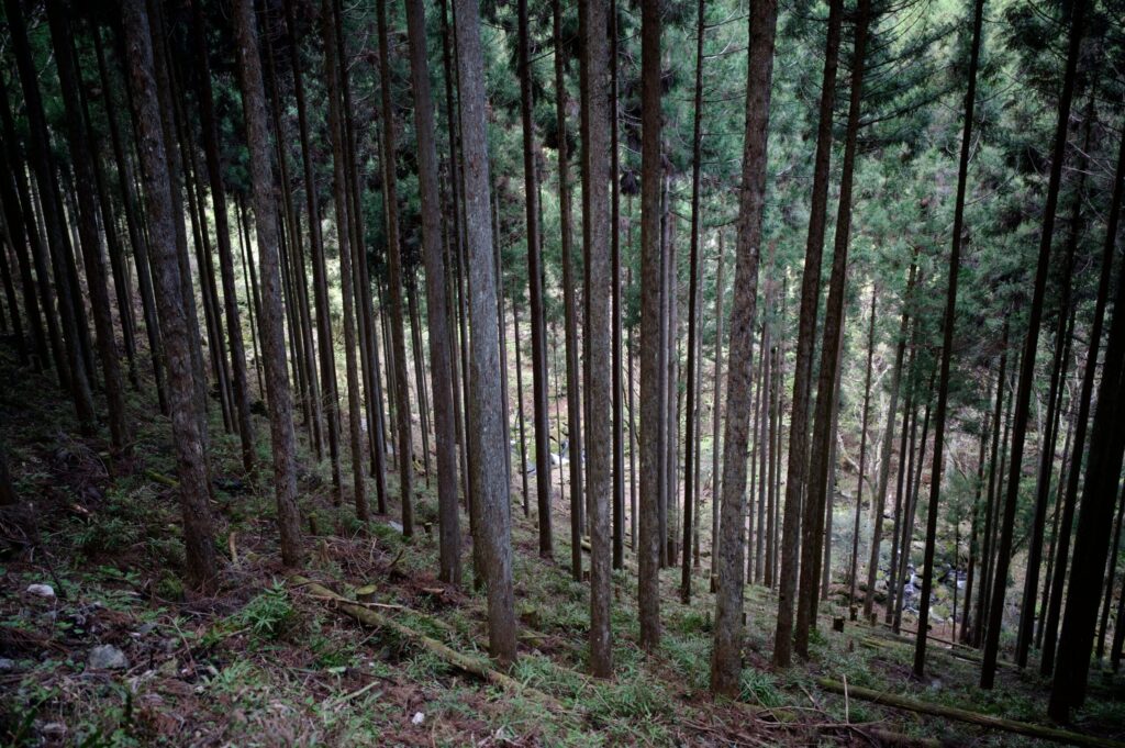 植栽林の向こうには沢が流れています。