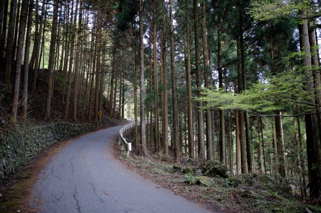 林道栃寄線に入ると、直ぐに上りが始まります。杉の香りを楽しみながら行きましょう。