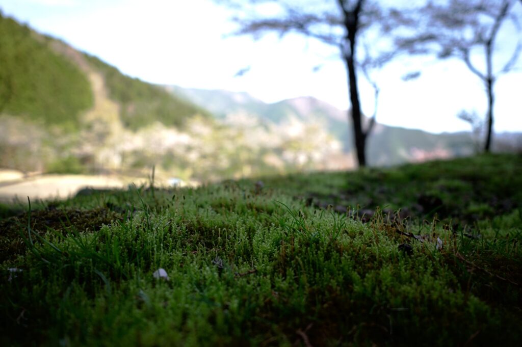 苔の向こうに見えるのは、本仁田山方面かな?
