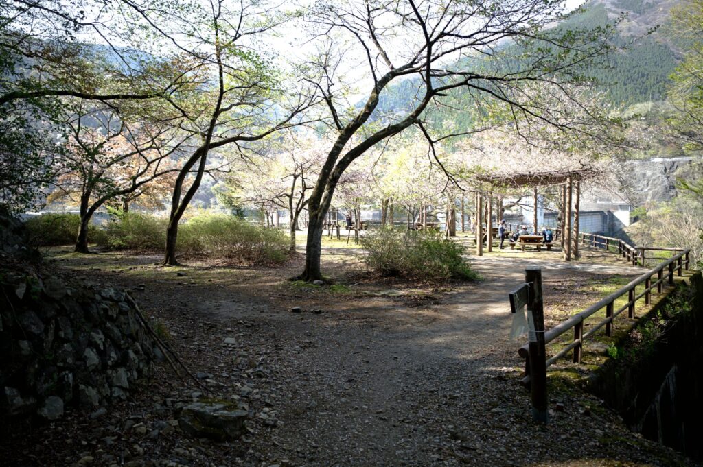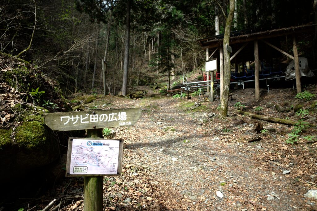 ワサビ田の広場。周辺にベンチあり。