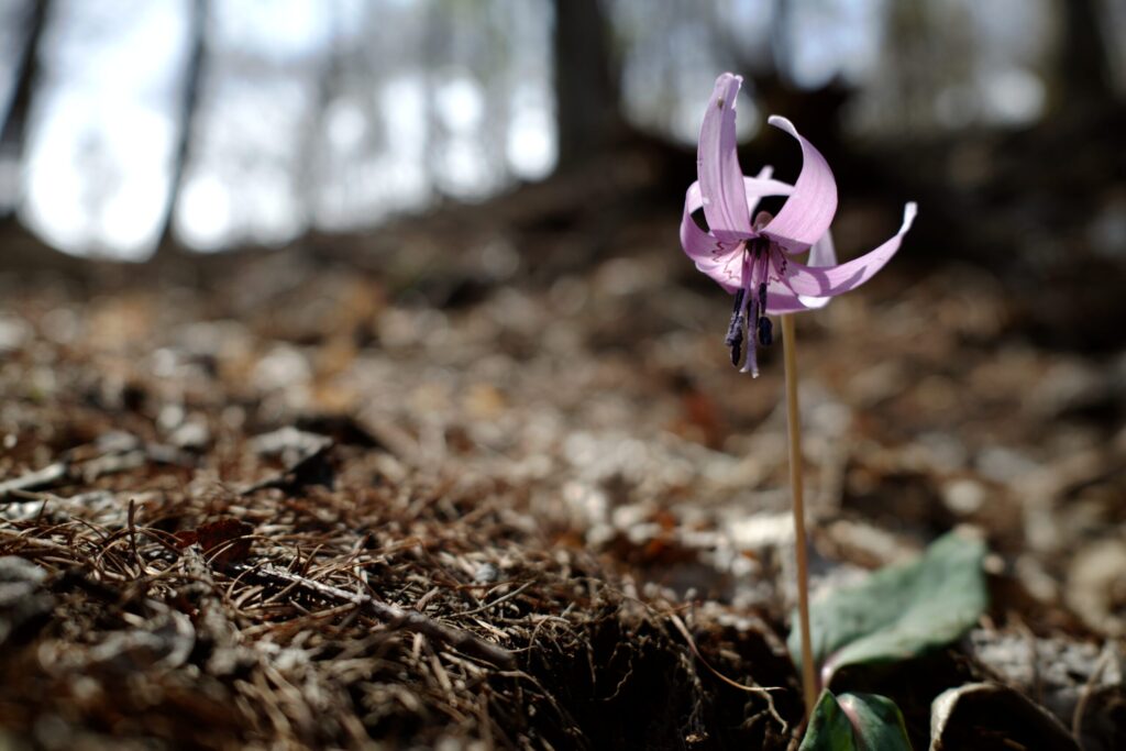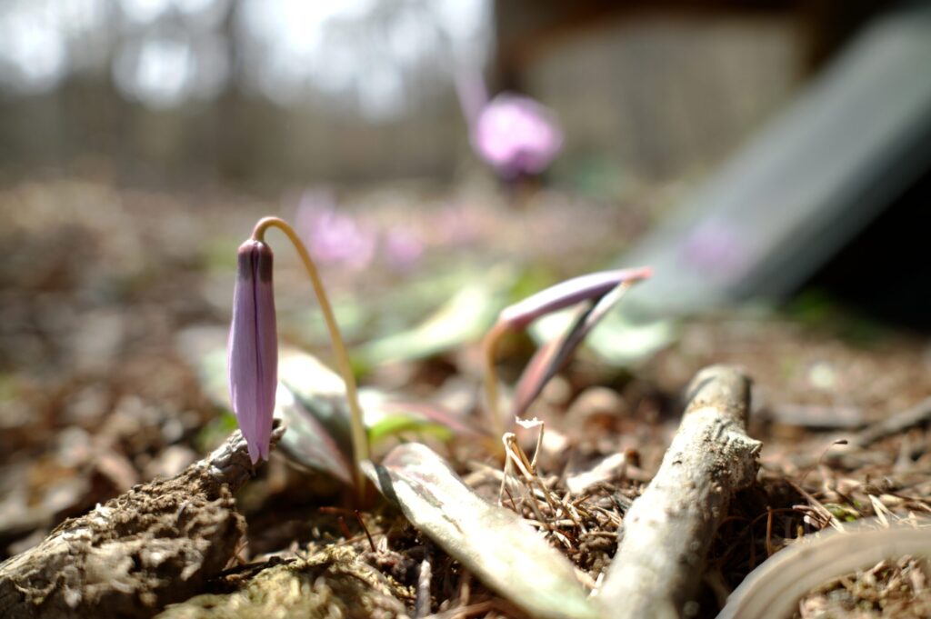 カラマツの広場周辺にはカタクリ花がたくさん。一見の価値ありです!
