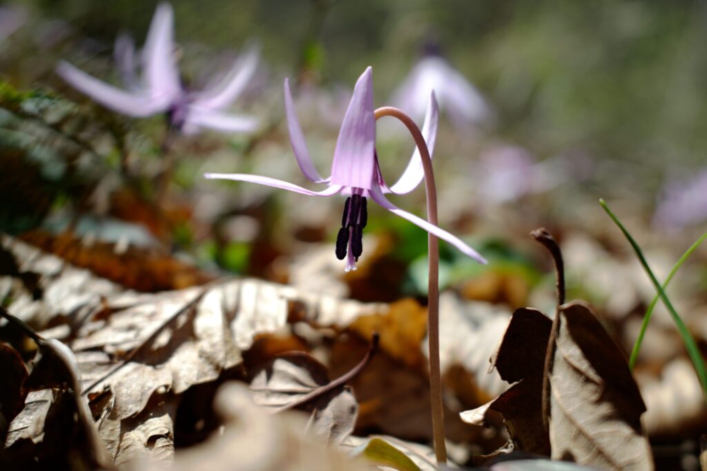 カタクリは、ユリ科カタクリ属に属する多年草。山地に群生し、種子が発芽して開花するまで8年から9年の歳月を有する、気の長い植物です。