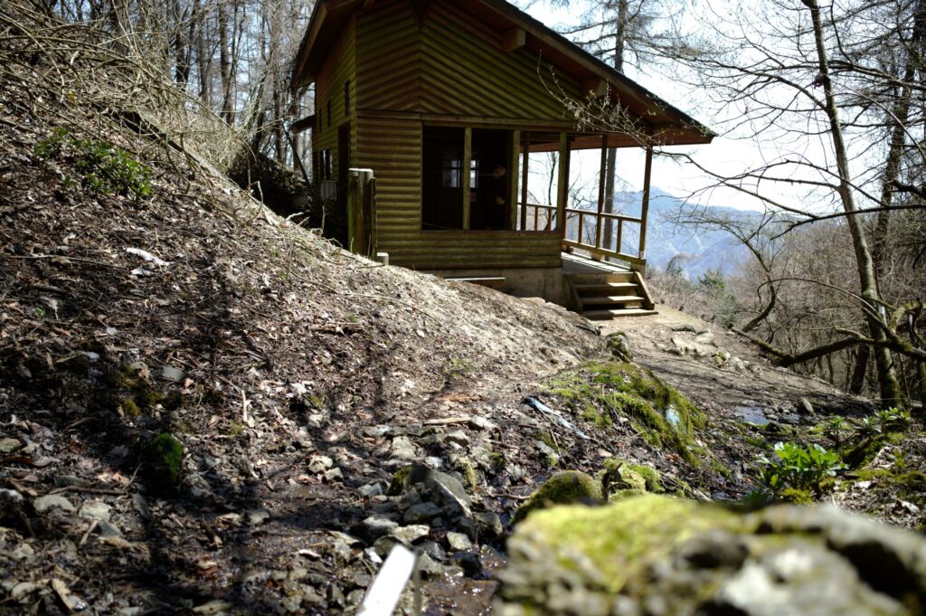 前山避難小屋が見えてきました。
