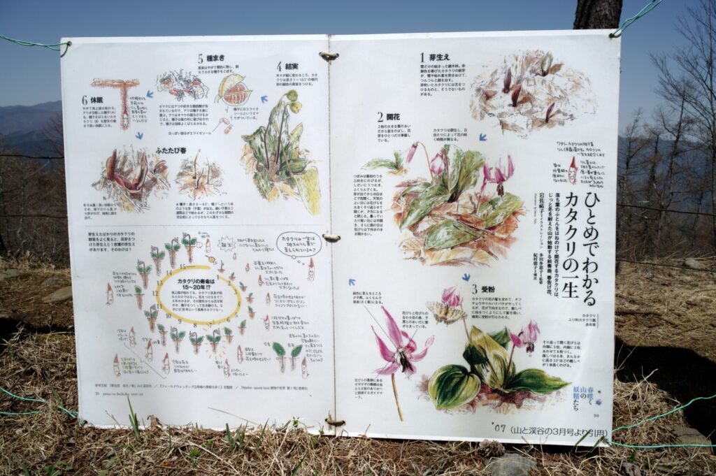 カタクリの一生が紹介されたパネル。