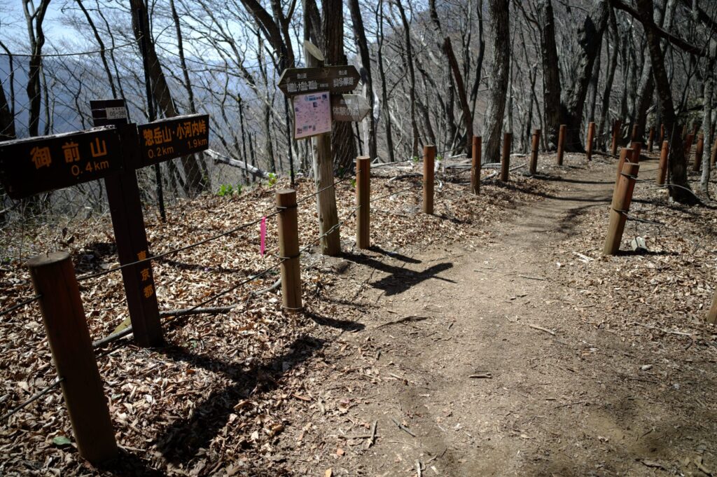 ここにも御前山への登山口が。今回は、林道を先へ進みます。