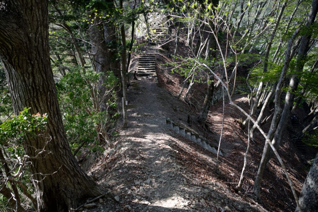 それでは、山頂に向かいましょう。急な階段を上ります。